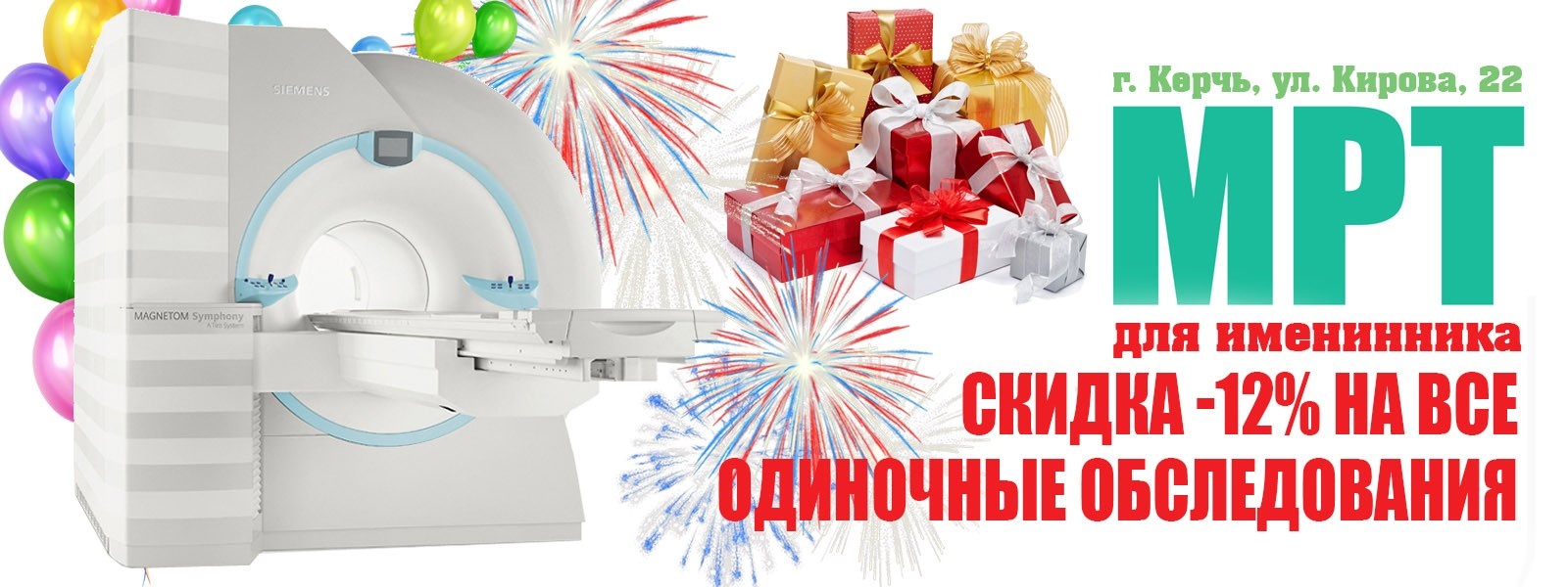 - скидка - 12 % на любое единичное исследование МРТ для именинника в день рождения и два дня после дня рождения.