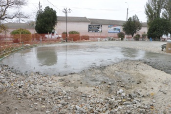 Сейчас формируется армированная стяжка для дальнейшей укладки прорезиненного покрытия. После по территории будут расставлены детские игровые городки.