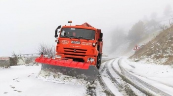 Расчистка снега ведется с помощью спецтехники. На дорогу высыпали 10 тонн песко-соляной смеси. В пресс-службе добавили, что дорога на плато Ай-Петри закрыта со стороны Ялты и Бахчисарая для всех транспортных средств, кроме автомобилей с повышенной проходимостью категории М1 (полноприводные).