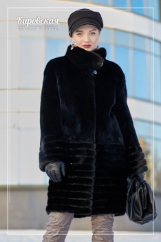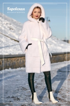 «Кировчанка» по крою напоминает веретено: немного расширяется в области талии и сужается к низу изделия. Меховые полоски расположены по диагонали, что зрительно вытягивает силуэт. Отшивается модель либо с воротником-стойкой, либо с аккуратным норковым капюшончиком. Оттеночная гамма весьма нежная, начиная от белого, пудрового и заканчивая сапфировым.