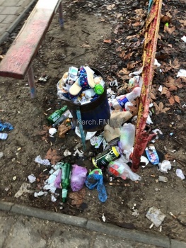 «Уже вторая неделя точно, как здесь переполнены мусорки. Напротив детский сад - десятки малышей видят это ежедневно. А тут и бумажки, и бутылки, - все что хочешь», - написал керчанка.