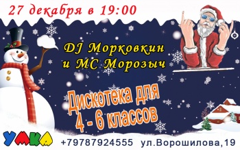 Ваш ребенок давно вышел из возраста утренников? Что ж! Это не значит, что для него мы не можем сделать праздник! Приглашаем старших школьников на фееричное представление с последующей дискотекой! Вас ждет интересная концертная программа, море впечатлений и яркие новогодние эмоции!