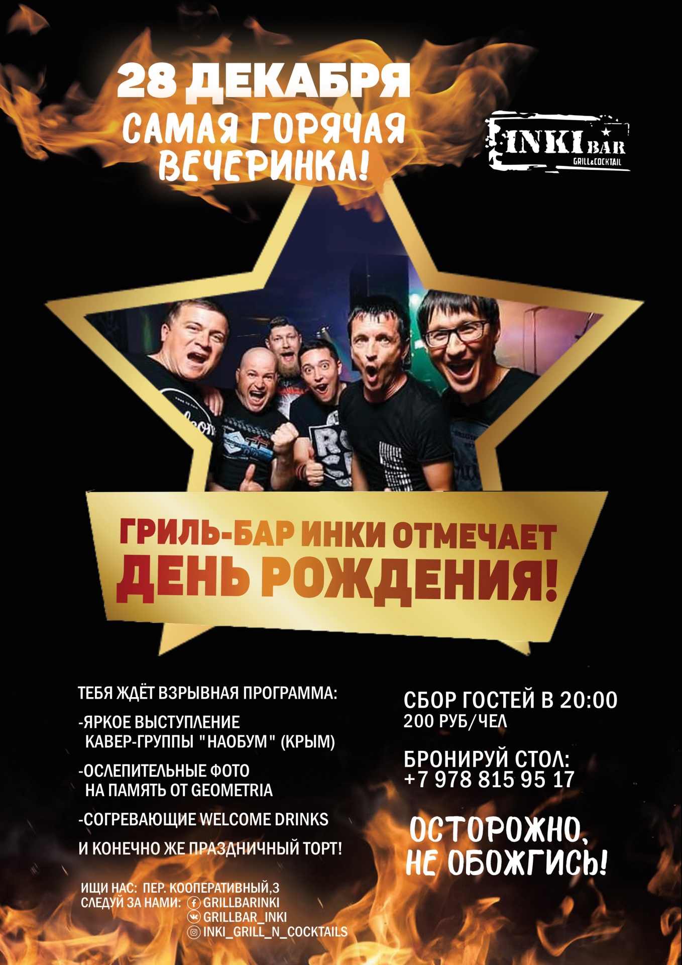 28 декабря Гриль-бар INKI отмечает День рождения и тебя ждёт Настоящий движ: