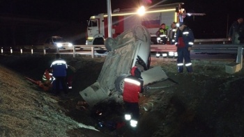 Так, один вызов в службу спасения поступил в 05:34. В сообщении говорилось о том, что на трассе «Таврида» в районе с.Крымская Роза водитель легкового автомобиля «Lada Kalina» не справился с управлением автомобиля, выехал на обочину и допустил его опрокидывание.