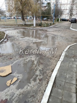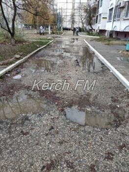 «Обращаемся в редакцию, так как администрация города и водоканал не реагирует на наши обращения! Во дворе домов по Ворошилова 27, 27/1, 31, 33, 35 образовалась река с озёрами и водопадом срок этой речке уже лет так пять! Сначала вода просто проступала сквозь асфальт и не высыхала даже летом в 30 градусную жару, сейчас это полноценная река которая размыла всю дорогу, по которой дети идут в школу и детский сад. Вода проложила себе дорогу за дом подмыла грунт и течет на систему отопления и в подвал дома чем подмывает фундамент! Чего мы ждём чтобы кто-то провалился или просел дом? Посреди двора стоит озеро между детской площадкой и пешеходной дорожкой, этот участок ремонтируют ежемесячно там не труба, решето с чопиками. Власти Крыма сообщают о нехватки воды в Крыму так пусть едут в Керчь у нас ее достаточно если водоканалу не надо устранять утечки!