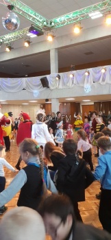 После сказки, дети, вместе с героями, а также Дедом Морозом и Снегурочкой водят хоровод в фойе второго этажа и танцуют.