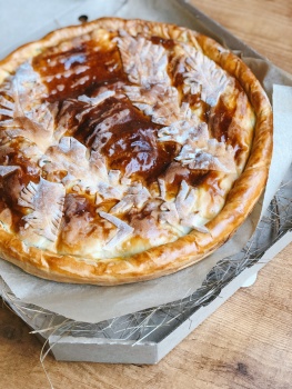- пирог с мясом и крем-сыром (1100) - 790 р (в составе начинки свино-говяжий фарш и сливочный сыр);