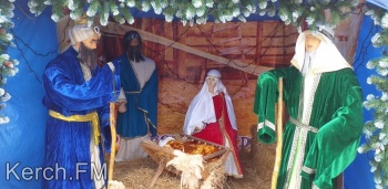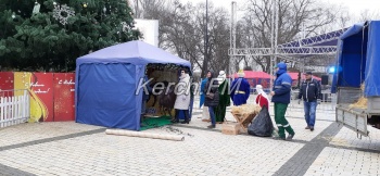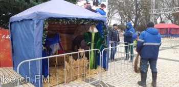 В Керчи 6 января начали подготовку к празднованию Рождества. Как передает корреспондент Керчь.ФМ, на площади Ленина рабочие устанавливали вертеп. Пока фигуры выгружали и ставили палатку, появились желающие сфотографироваться.