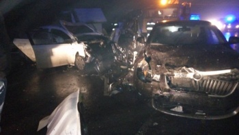 По прибытии спасатели выяснили, что на дороге столкнулись 4 автомобиля. Три человека пострадали, один - получил травмы несовместимые с жизнью.