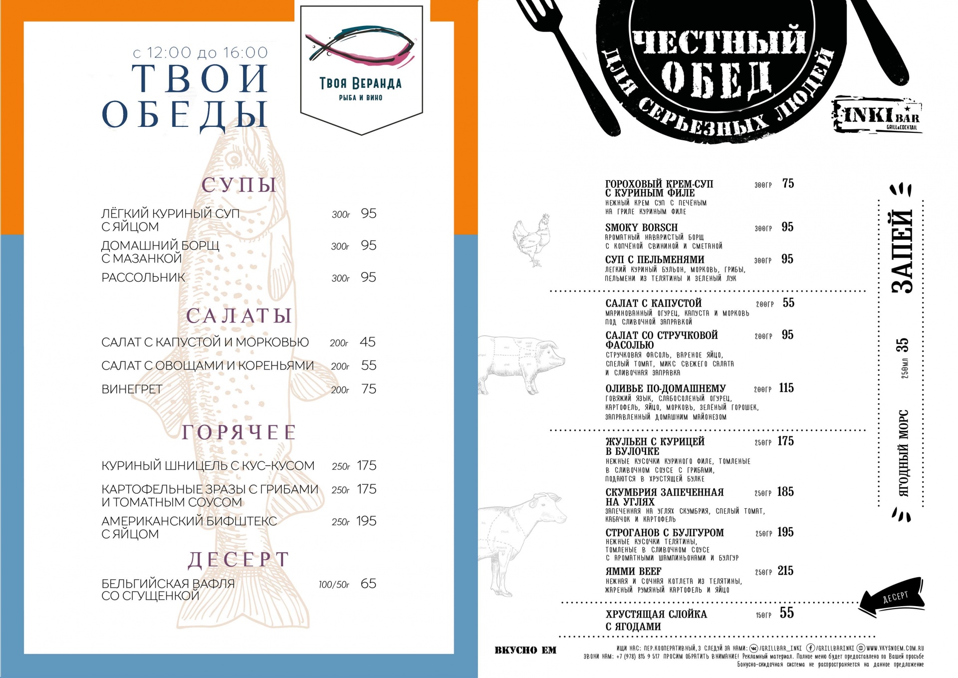 Каждую неделю с понедельника по пятницу с 12:00 до 16:00 - сытные обеды по честным ценам в «Твоей Веранде. Рыба и вино», Гриль-бар «Инки» и городских пиццериях «J-Pizza».