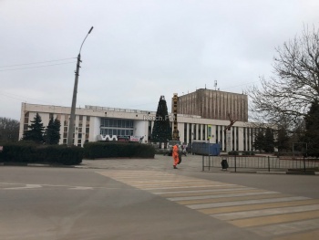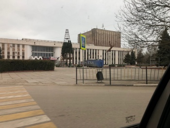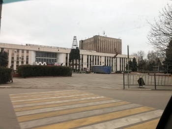 В Керчи 21 января на площади у Дворца культуры «Корабел» начали разбирать новогоднюю ёлку. С нее сняли украшения и разбирают ветки с каркаса. На месте работает кран, елку убирают в контейнер