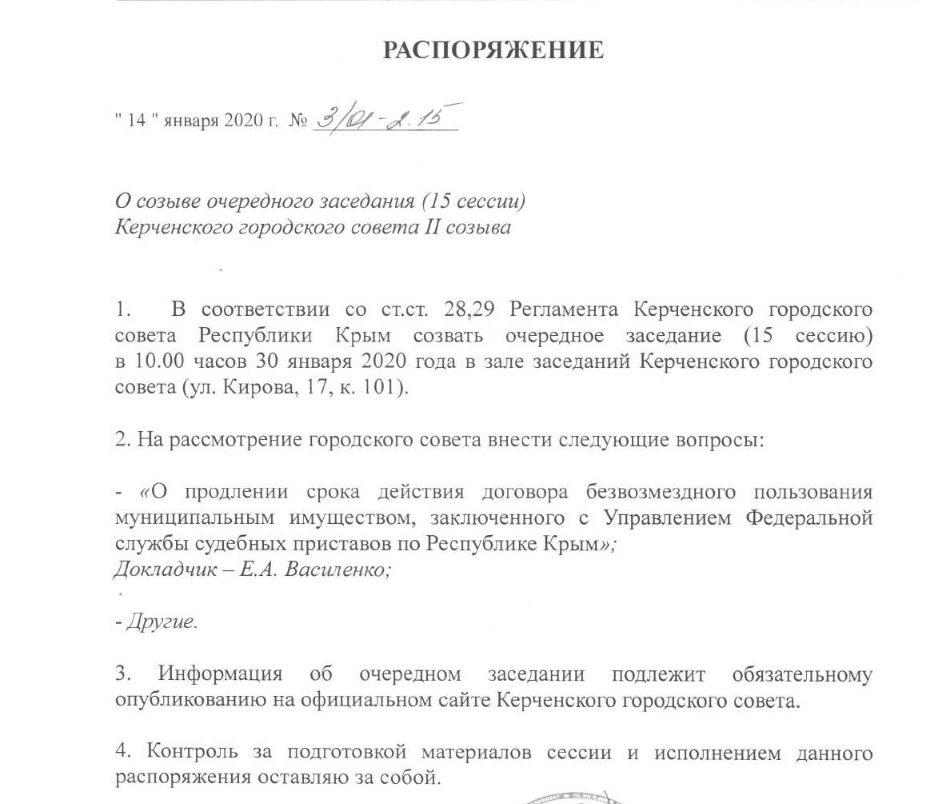 Очередная 15 сессия Керченского городского совета 2 созыва состоится в 10.00 часов 30 января.