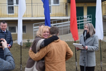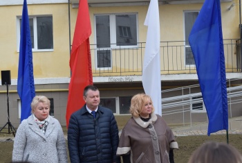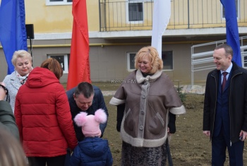 Это первые квартиры, которые город закупил в новостройке. После выручения присутствующие сделали общее фото и отправились смотреть квартиры внутри