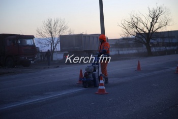 В Керчи на выезде из города начали снимать старую дорожную разметку. Работы проводят с помощью спецтехники. Данная разметка путала водителей. Как Керчь.ФМ рассказали рабочие, новая разметка появится весной.