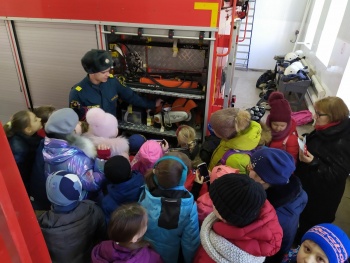 В ходе экскурсии школьники с интересом наблюдали за выездом пожарного автомобиля на условный вызов, осматривали его техническое оснащение, боевую одежду, которая выдерживают высокую температуру, а также средства защиты органов дыхания для работы в дыму.