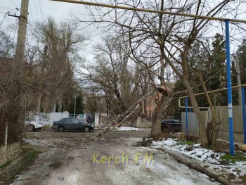 Так, уже начали падать большие ветки с деревьев. Одна из таких упала на дорогу у детской больницы.