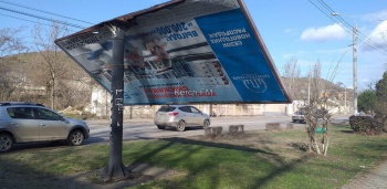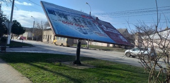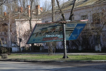 В Керчи из-за ветра пострадал уже второй билборд за два дня, - передает Керчь.ФМ. Так, снова согнут пополам рекламный щит по ул. Свердлова. Напомним, во время сильного ветра в 2018 году его уже так складывало.