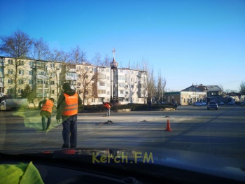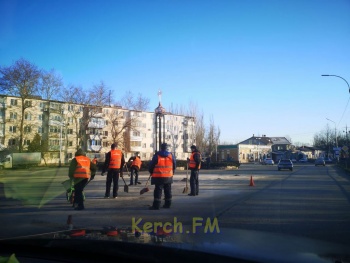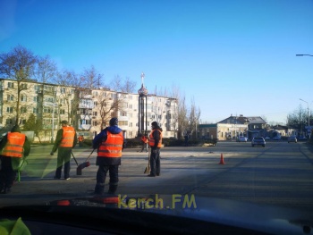 В Керчи 14 февраля на улице Пирогова появился «трудовой десант», - передает Керчь.ФМ.  Заключенные колонии-поселения убирают улицу и обочины дорог.