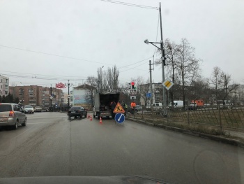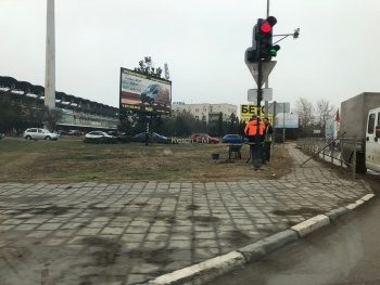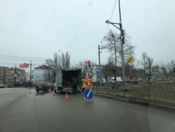 В Керчи на перекрестке дороги по Мирошника-Еременко перекрыта одна полоса дороги, - передает Керчь.ФМ.  На месте находился автомобиль с рабочими, участок оградили специальными конусами. Перед работами поставили знак.
