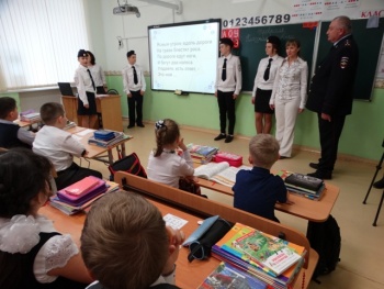 А вот учащиеся школы № 5 г. Керчи удивили жюри своей встречей. Отряд юных инспекторов дорожного движения, одетых в полицейскую форму, встретил судейскую комиссию прямо у входа. Юные инспектора провели у ребят младших классов уроки безопасности дорожного движения. С свою очередь, школьники порадовали жюри хорошими знаниями Правил дорожного движения.