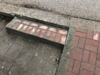 Так, здесь уложили новую плитку, залили подпорную стенку, ступеньку и оборудовали два пандуса.