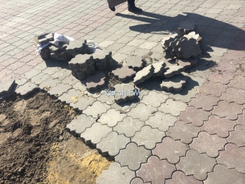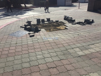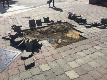 В Керчи 26 февраля на улице Ленина сняли часть тротуарной плитки. Рабочих в 15:00 часов на месте работ не было, - передает Керчь.ФМ