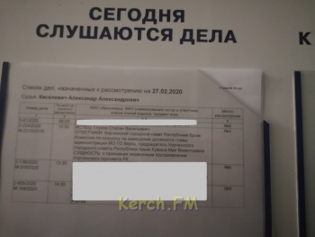 Керченский суд отказал Глухову в споре по конкурсу на должность главы администрации. Сегодня, 27 февраля, судья Александр Киселевич огласил резолютивную часть решения по иску о признании незаконным постановления Председателя Керченского городского совета Республики Крым и отмене Решения Керченского городского совета о назначении на должность главы Администрации города Керчи Бороздина Сергея Вадимовича, - передает Керчь.ФМ.