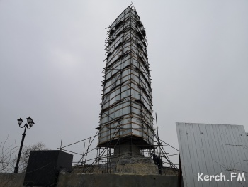 Постамент обелиска без облицовочной плитки, также плитки нет и на площади перед постаментом. Успеют или нет реставраторы АО «Баварский дом» - неизвестно, но до 75 годовщины, когда на Митридат поднимутся сотни керчан, осталось немногим больше 2 месяцев, или, если быть точным, 69 дней.