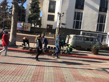В Керчи на площади Ленина рабочие «Жилсервис Керчь» приводят в порядок тротуарную плитку. Начиная от памятника Ленина в сторону банка рабочие частями снимают старую плитку, ровняют и выкладывают ее на место, - передает Керчь.ФМ.