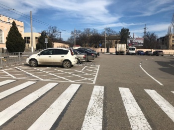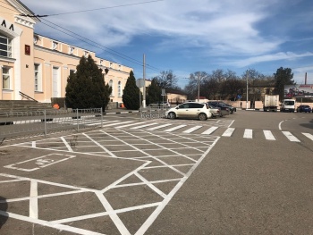 В Керчи на ж/д вокзале обновили дорожную разметку. Кроме обычной разметки, здесь появилась новая - «вафельная разметка».