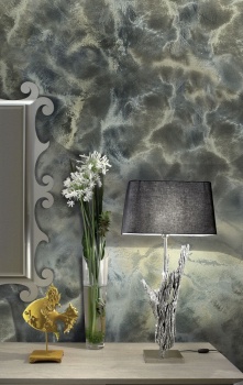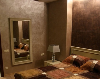 * Гранит. Эффект гранита на стенах получается за счёт содержания в составе краски акриловых цветных пузырьков.