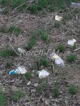 В редакцию  Керчь.ФМ постоянный читатели прислали фотографии мусора, который везде разбросан в Казенном саду по Вокзальному шоссе.