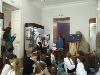 Среди гостей праздника была замечена и известная жительница Музейного дворика кошка Клио. Сотрудники музея помогли ей ответить на вопросы юных посетителей»