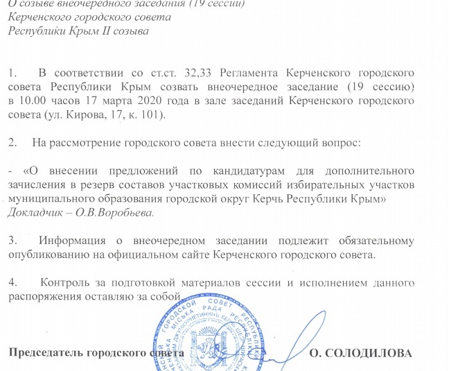 Внеочередная 19 сессия Керченского городского совета 2 созыва состоится в 10.00 часов 17 марта.