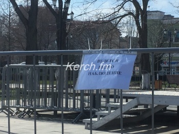 Рабочие уже установили сцену, а на ограждении висит объявление: «Ведется видеонаблюдение».