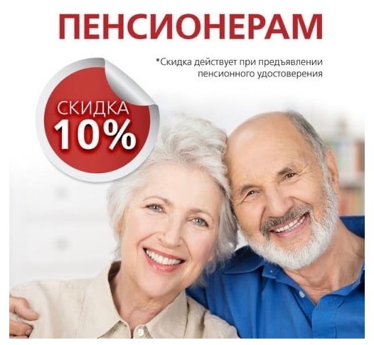 Скидка 10% на очки для коррекции зрения пенсионерам при предоставлении пенсионного удостоверения.