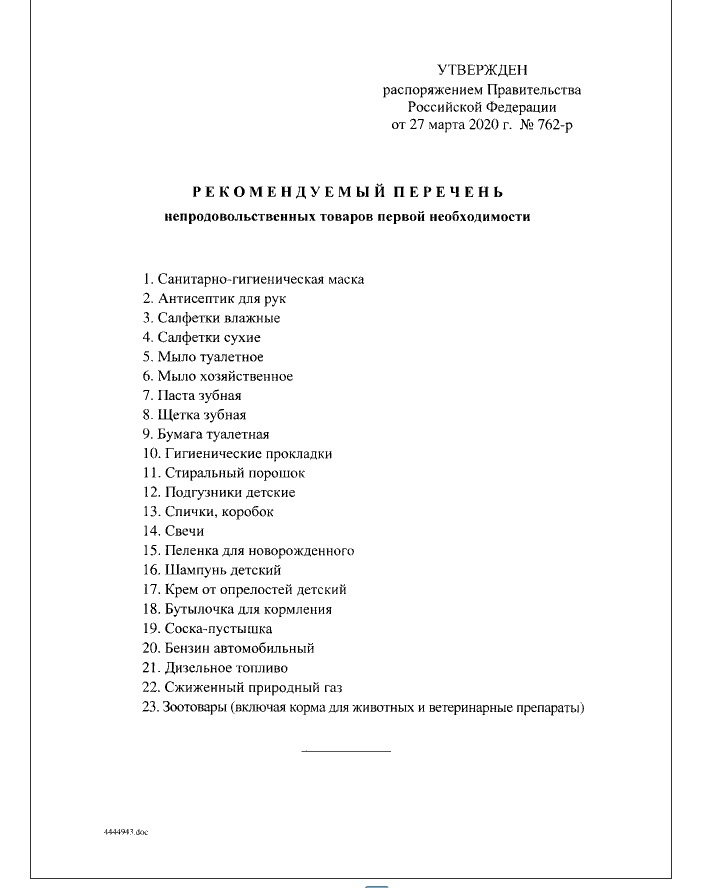 На портале правовой информации сегодня опубликован рекомендованный перечень непродовольственных товаров первой необходимости.