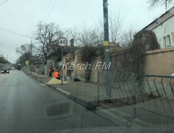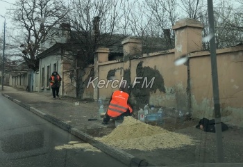 В Керчи 30 марта коммунальщики в специальных жилетах и защитных масках приводят в порядок забор у дороги по ул. Чкалова, - передает Керчь.ФМ.