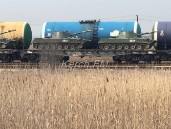 В Керчи на железнодорожных путях в районе паромной переправы стоит эшелон военной техники. Об этом  Керчь.ФМ сообщили постоянные читатели. Керчане отметили, что рядом находятся военные.