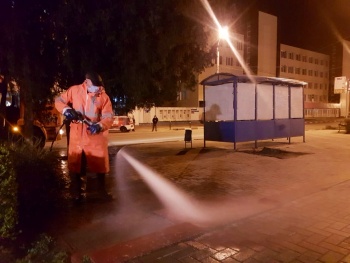 Ночью специалисты МУП «ЖилсервисКерчь» приступили к санитарной обработке остановок общественного транспорта, а также дорог общего пользования. В рамках обработки в воду добавляется средство для дезинфекции. Об этом в соцсети сообщил глава администрации Керчи Сергей Бороздин, - передает Керчь.ФМ.