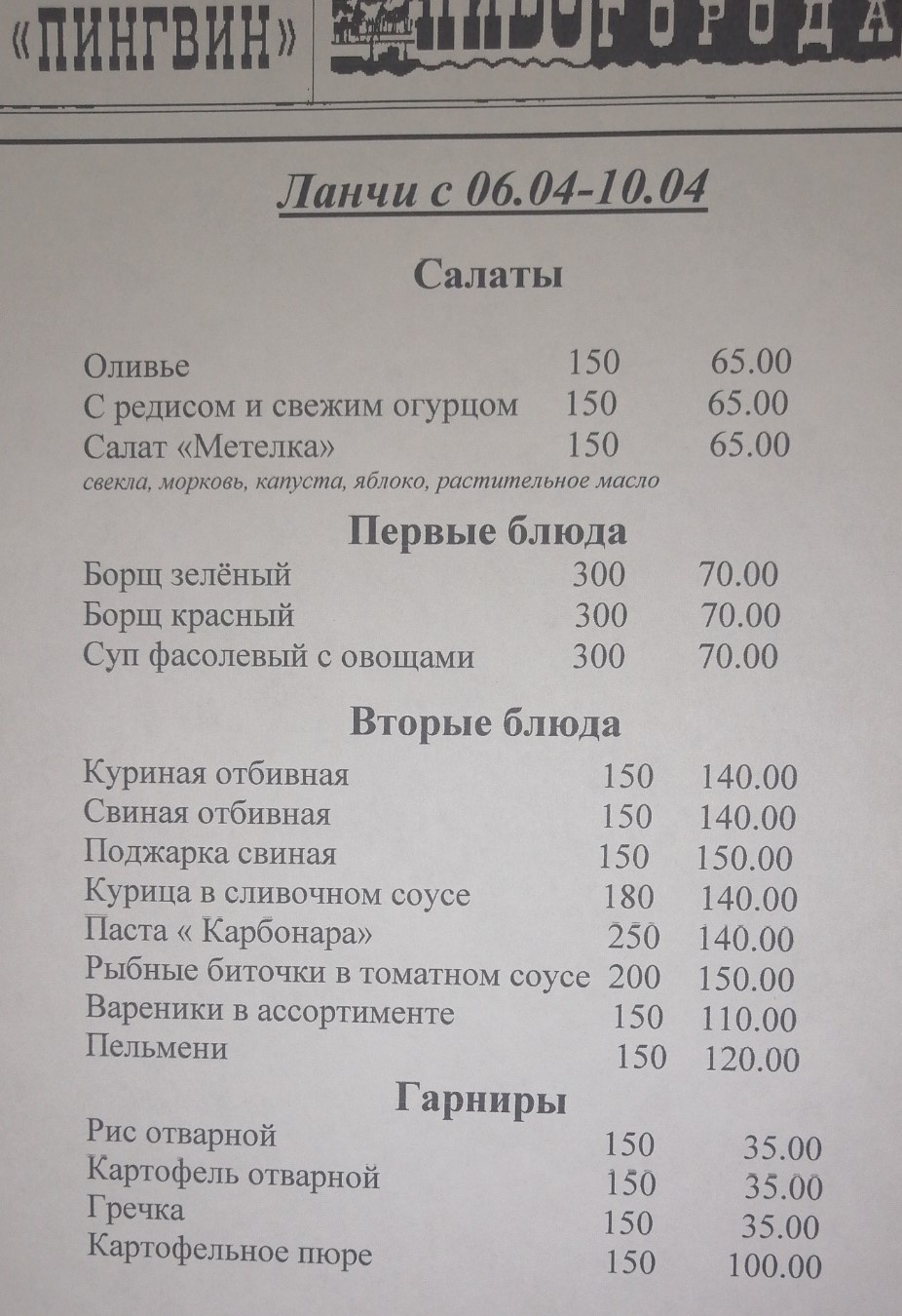 Кафе «Пингвин», продолжает работать для вас с доставкой от 500 рублей, а также самовывоз!
