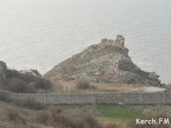 За забором находится объект культурного наследия городище Полянка III век до н. э. С 80-х годов 20 века там также находится профилакторий бывшего военного совхоза "Азовский", который (здания) находится в частной собственности. Забор этот возвел хозяин здания в 2008 году одновременно огородил территорию раскопок. Сейчас он раскопки охраняет, а летом принимает восточно-крымскую археологическую экспедицию. Молодежь приезжает на раскопки, одновременно отдыхают, купаются, устраивают дискотеки. Очень гордятся, что их охраняют, территория огорожена и есть своя вертолетная площадка, вот только с транспортом туго. За забор попасть не удалось - забор высоки и глухой до самого моря, на воротах замки.