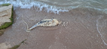 В Керчи на Аршинцевский пляж, в районе дамбы, море выбросило мертвого дельфиненка. Об этом  Керчь.ФМ сообщили постоянные читатели.