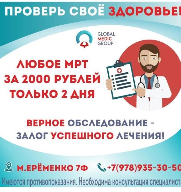 МРТ любой зоны за 2000р. продлена до 11.05.2020г.