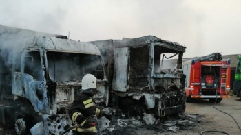 По прибытии на место обнаружено, что горят кабины двух рядом стоящих грузовых автомобилей. Возгорание оперативно ликвидировано в 06:12 на площади 6 квадратных метров. Причина пожара устанавливается.