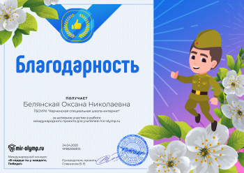 «А вот 7 класс под руководством учителя-дефектолога Оксаны Белянской и вовсе стал победителем международного конкурса «В сердце ты у каждого, Победа!». Сама Оксана Николаевна награждена грамотой за активное использование информационных технологий при проведении внеклассного мероприятия, посвященного Дню Победы», - подчеркнули в учреждении