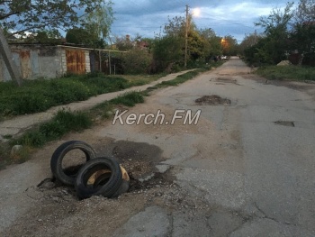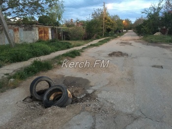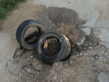 Керчане отметили, что дорога здесь провалилась достаточно давно. И единственное, что предприняли - этом положили в яму две покрышки.