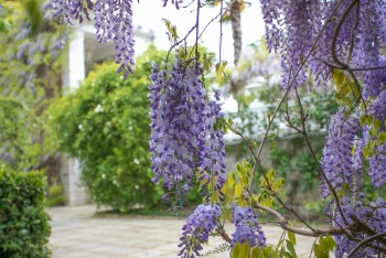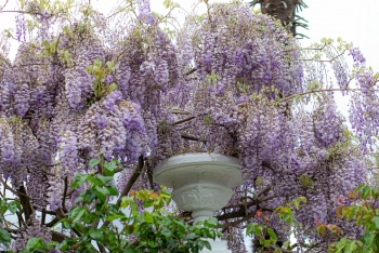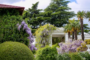 Нынче просто поражают взгляд невероятно пышные каскады глициний, напоминающие пенный цветочный водопад. А наша коллекция сирени примечательна ещё и тем, что с 2011 года Никитский сад - участник федерального проекта «Сирень Победы», цель которого - высадить в каждом из 13 городов-героев аллеи из саженцев отечественных сортов сирени, названия которых связаны с событиями или героями Великой Отечественной войны. Селекционерами НБС созданы такие уникальные сорта, как «Севастопольский вальс» и «Эльтиген», идёт работа над созданием сортов «Брест» и «Героям Сталинграда». В этом году цветение сирени активно продолжается и после Дня Победы, а всего в НБС насчитывается более 100 сортов и форм зарубежной и отечественной селекции, часть из которых уже включена в коллекцию, а часть находится в изучении и на размножении».