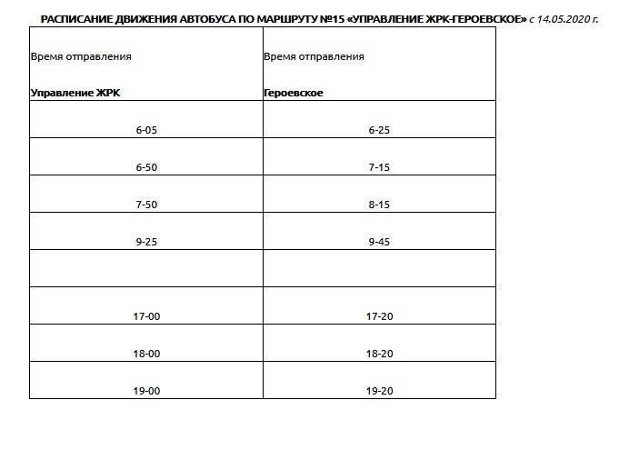 При этом с 14.05. по 31.05 устанавливается новый график движения маршрута № 15