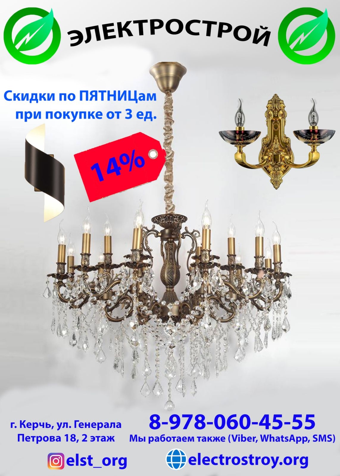 Скидка на люстры в магазине «Электрострой»!